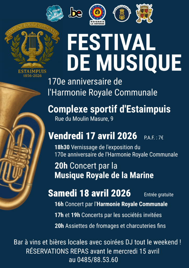 Samedi 18 avril : Participez en famille ou entre amis au festival de musique de l’Harmonie royale communale d’Estaimpuis au sein du complexe sportif d’Estaimpuis !