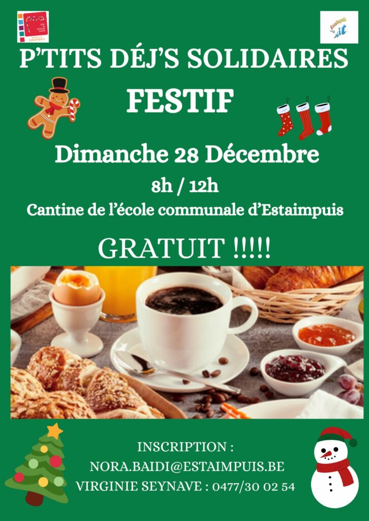 Le Plan de Cohésion Sociale Estaimpuis a le plaisir de vous convier à son dernier petit déjeuner solidaire de l’année.